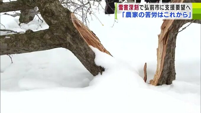 深刻な雪害 リンゴの木の幹が縦に真っ二つ…「今までないね」園主も経験したことのない被害 弘前市議会が24日に市に対し除排雪や農家の支援を要望へ 2025年1月23日(木) 21:10 国内 記録的な大雪を受け、青森県弘前市の弘前市議会がリンゴ園の雪害を調査しました。中には、全体の1割ほどが被害を受けた園地もあり、市議会は24日に市に対して除排雪や農家の支援を要望することを決めました。弘前…