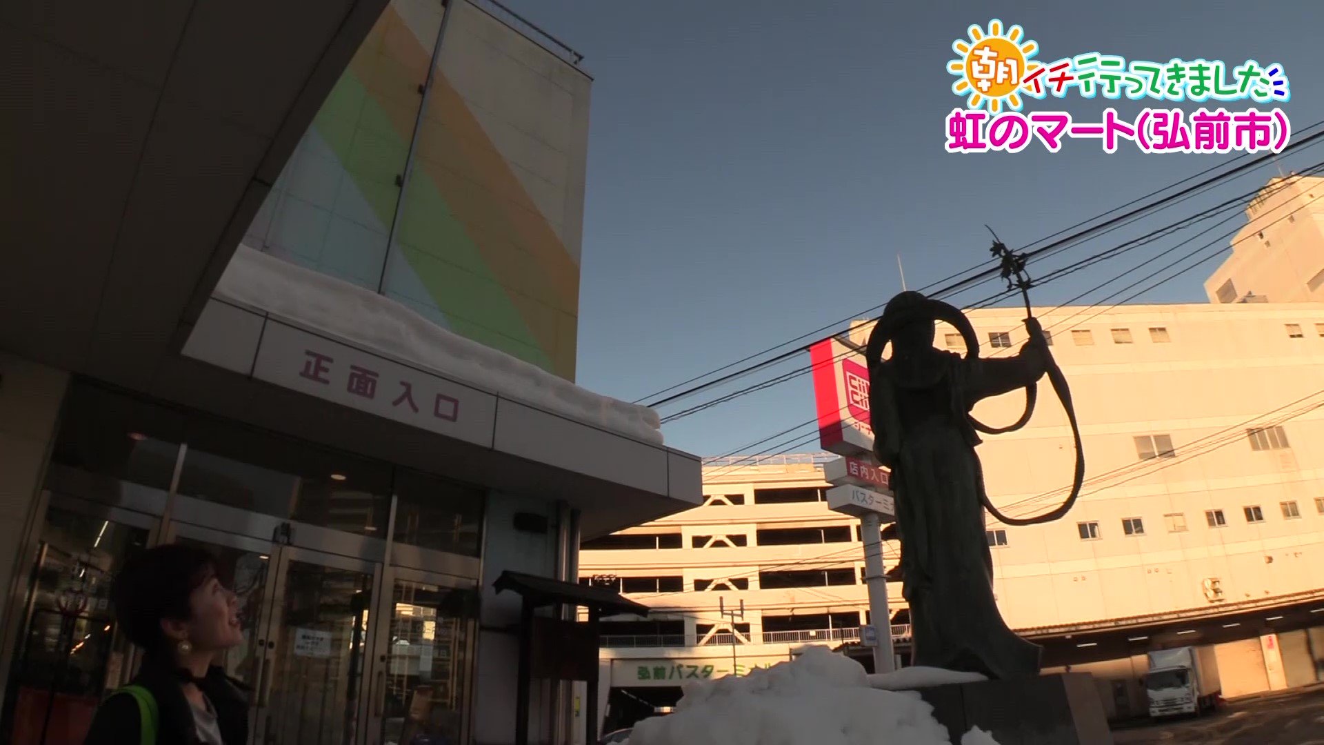 「おはようございます。今、朝8時前です。雲一つない青空が広がっています。【虹のマート】は、2024年に弘前市の『街づくり大賞』を受賞するなど、弘前の台所としてにぎわっているようですよ。さっそく、行ってみましょう」