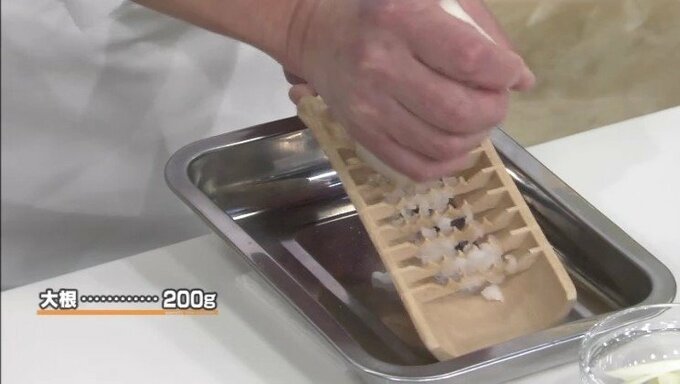 2.ねぎは1センチ幅の斜め切り、生姜はスライス、大根は鬼おろしにする。
