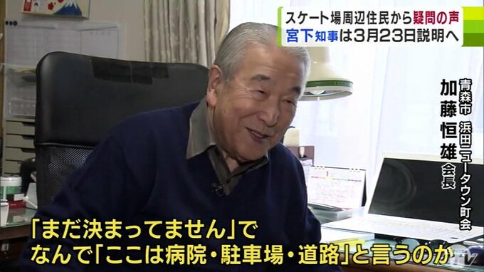 青森市の浜田ニュータウン町会の加藤恒雄会長。県営スケート場一帯の一部が町会内にあり、30日の統合新病院の基本計画案の発表に疑問を感じています。