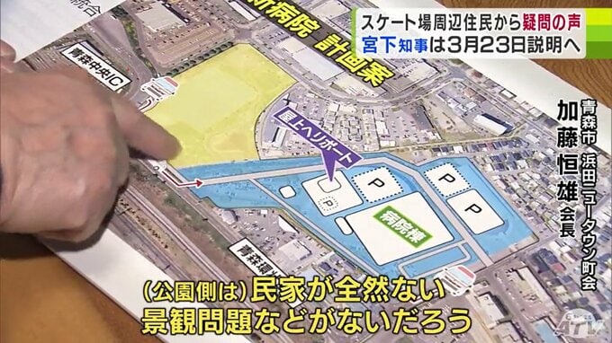 ほかにも、県営スケート場一体に建設する場合、病院棟の位置を公園側に変更する声が上がっています。