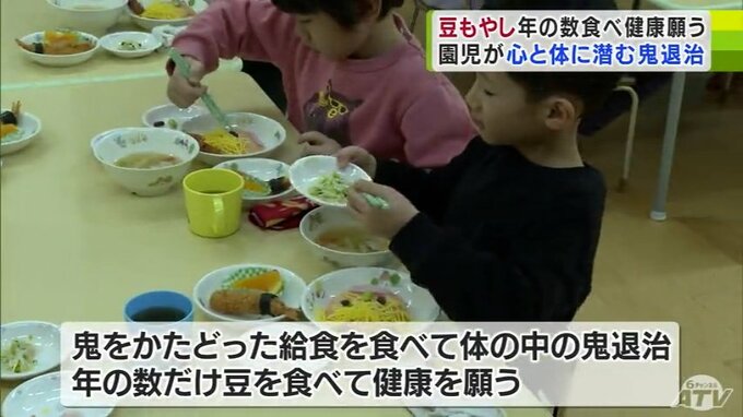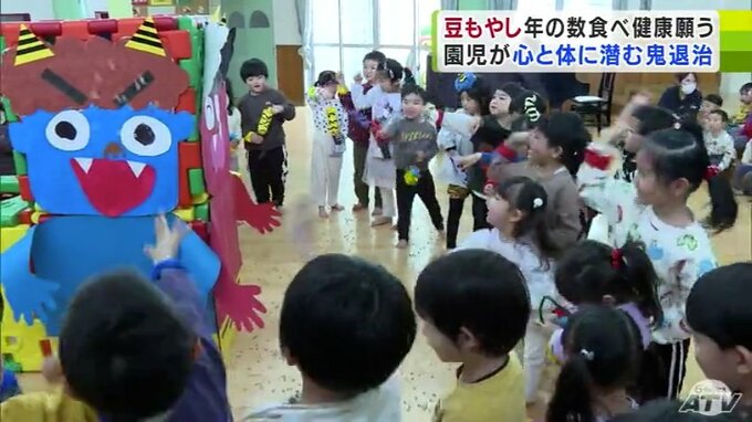 青森県弘前市の保育園で1日遅れで節分の「豆まき会」が3日開かれました。園児たちは、「大豆」ではなく「豆もやし」を食べて心の中に潜む鬼を退治しました。