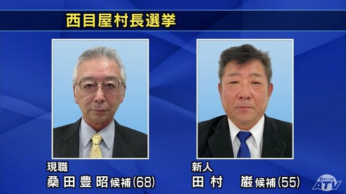 西目屋村長選挙に立候補したのは届け出順に現職で再選をめざす桑田豊昭さん(68)と、新人で元村議会議員の田村巌さん(55)の2人です。