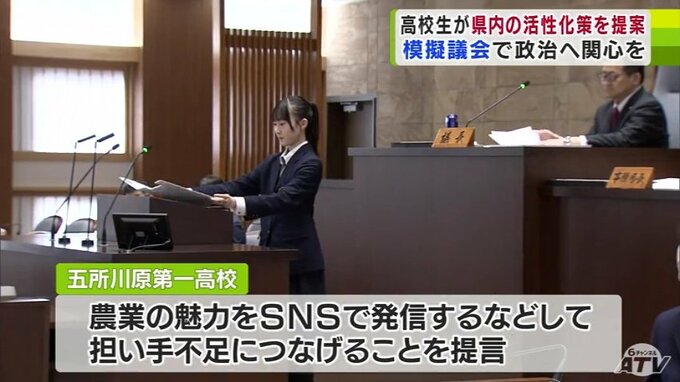 まもなく有権者になる高校生の模擬議会が4日開かれました。青森県内の活性化に向け若い世代のだからこその提案が光りました。