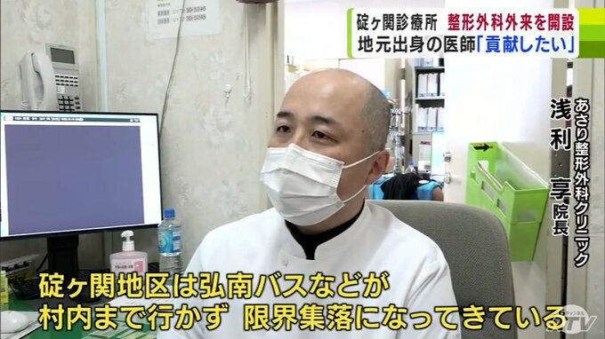 整形外科外来が開設されたのは、平川市碇ヶ関の診療所です。碇ヶ関の出身で弘前市で整形外科を営む浅利享院長が地元に貢献したいと開設しました。