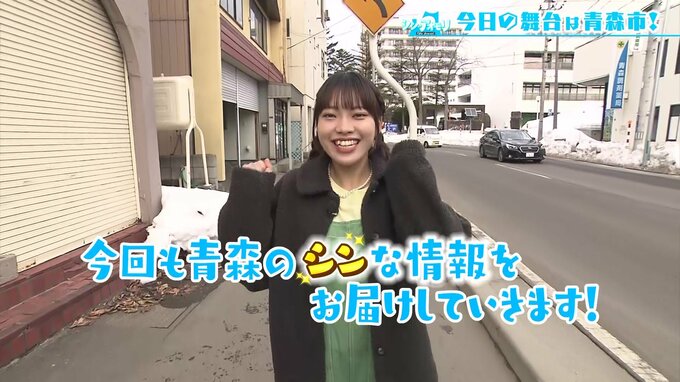 「きょうは青森市東造道に来ています。今回も青森の“シン情報”をお届けしていきます。今回はどんな“シン”が待っているのでしょうか?」
