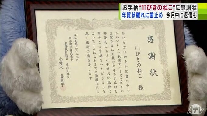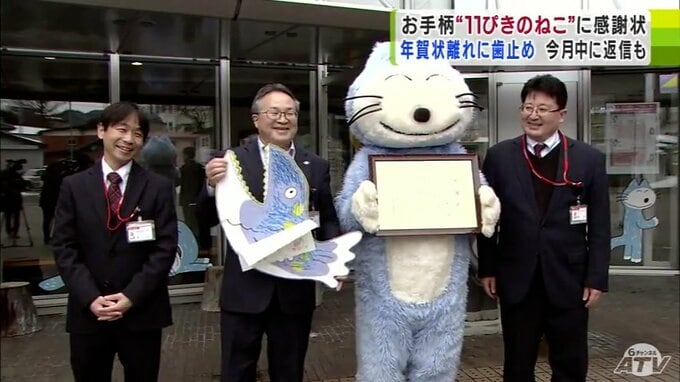日本郵便東北支社から「11ぴきのねこ」に感謝状が贈られました。人間以外への贈呈は初めてとのことです。