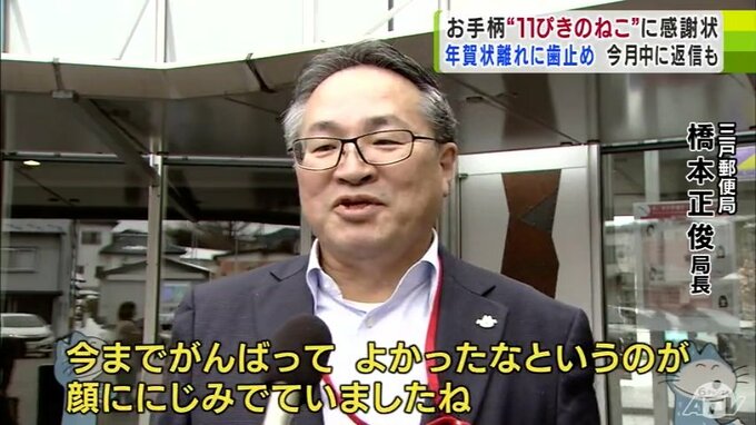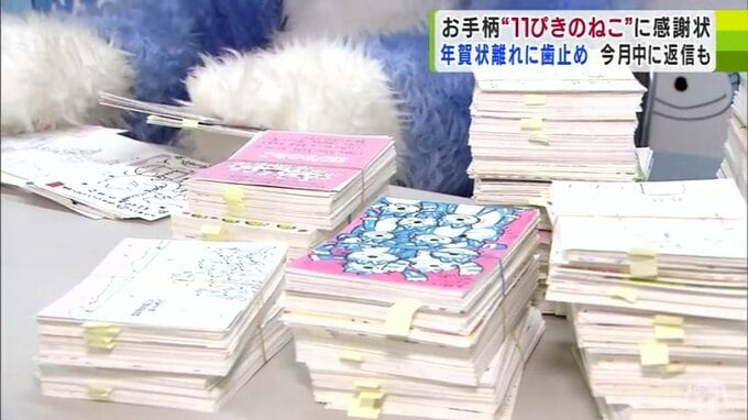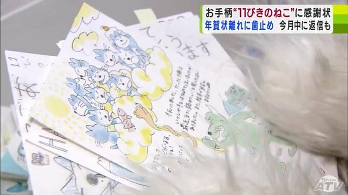 2025年、三戸郵便局で扱った年賀状4万9000通のうち、1割を超える6300枚余りが「11ぴきのねこ」宛てでした。
