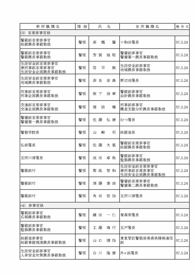 3. 【青森県警・2025春の人事異動一覧 全掲載】人事異動は約1300人規模 地元採用者として初の女性所属長を2人配置【青森県警察本部 定期人事異動・組織改編】