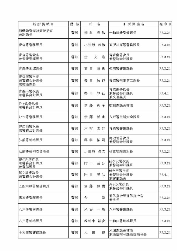 【青森県警・2025春の人事異動一覧 全掲載】人事異動は約1300人規模 地元採用者と…