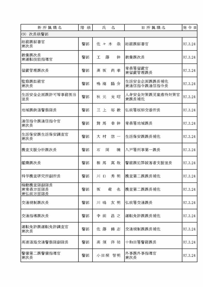 3. 【青森県警・2025春の人事異動一覧 全掲載】人事異動は約1300人規模 地元採用者として初の女性所属長を2人配置【青森県警察本部 定期人事異動・組織改編】