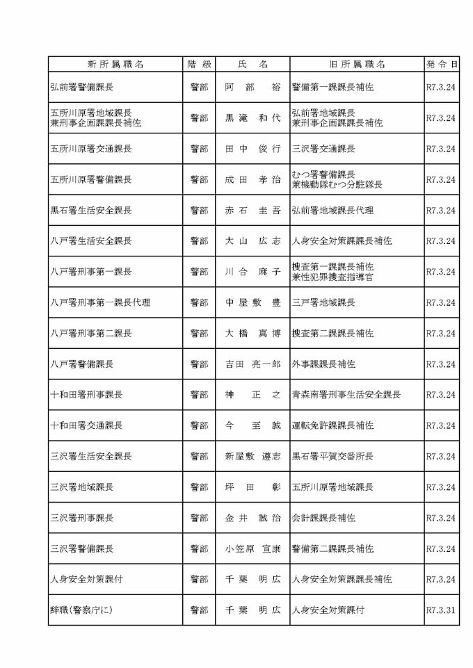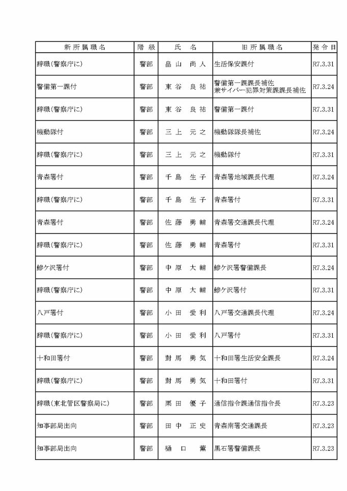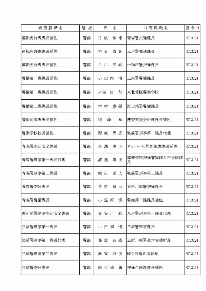 ATVの注目記事まとめ! 【青森県警・2025春の人事異動一覧 全掲載】人事異動は約1300人規模 地元採用者として初の女性所属長を2人配置【青森県警察本部 定期人事異動・組織改編】 2025年2月28日(金) 16:30 国内