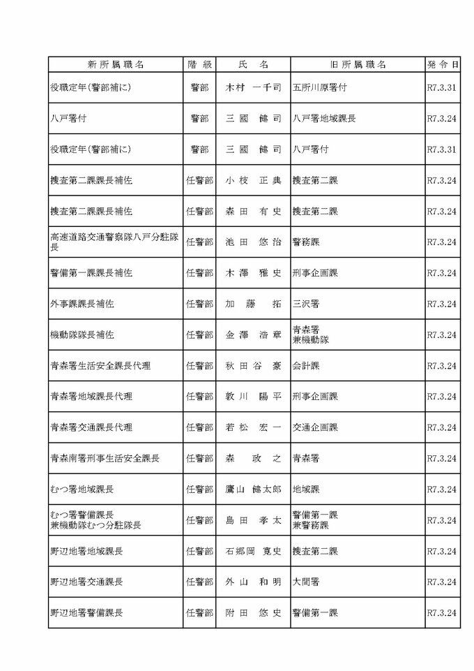 ATVの注目記事まとめ! 【青森県警・2025春の人事異動一覧 全掲載】人事異動は約1300人規模 地元採用者として初の女性所属長を2人配置【青森県警察本部 定期人事異動・組織改編】 2025年2月28日(金) 16:30 国内