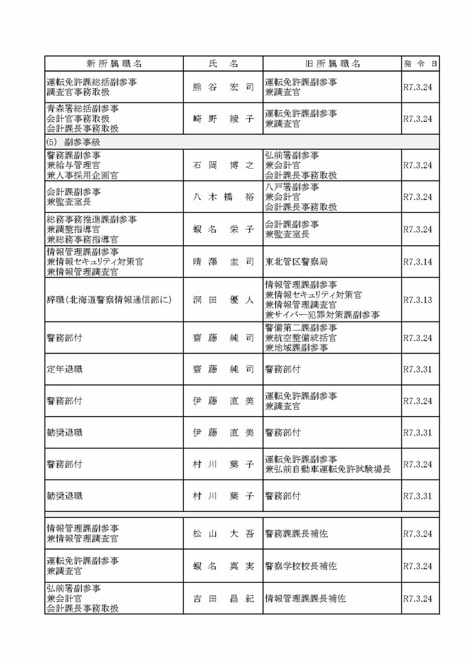 3. 【青森県警・2025春の人事異動一覧 全掲載】人事異動は約1300人規模 地元採用者として初の女性所属長を2人配置【青森県警察本部 定期人事異動・組織改編】