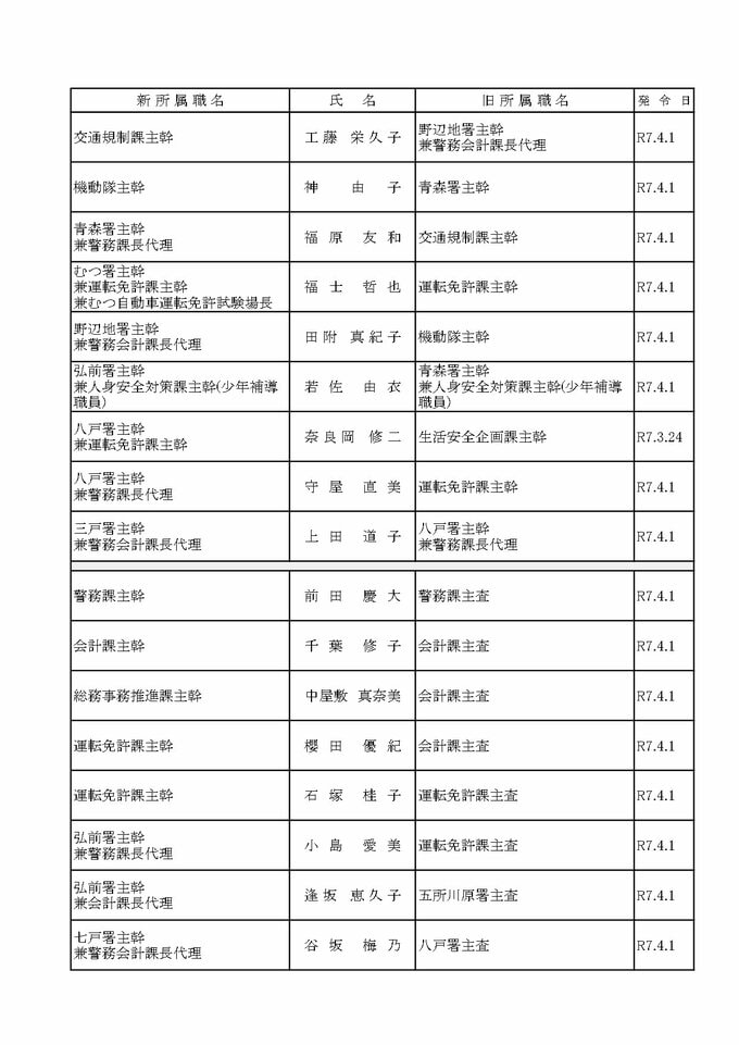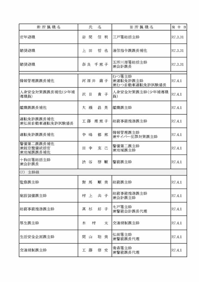 ATVの注目記事まとめ! 【青森県警・2025春の人事異動一覧 全掲載】人事異動は約1300人規模 地元採用者として初の女性所属長を2人配置【青森県警察本部 定期人事異動・組織改編】 2025年2月28日(金) 16:30 国内