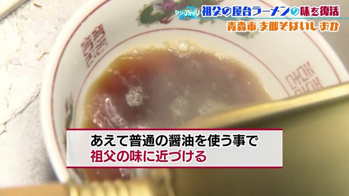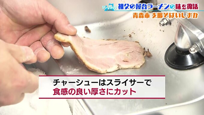 かえしは、青森県民になじみのある醤油を使うことで素朴で祖父のものに近い味に。チャーシューは、スライサーでカットすることで食感の良い厚さに。