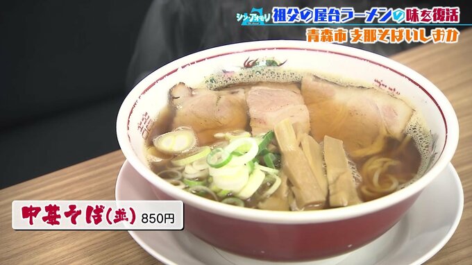 麺は中太を使用。復活させた味。それは、あっさりとした“津軽ラーメン”がベースの中華そば。(中華そば・並 850円)