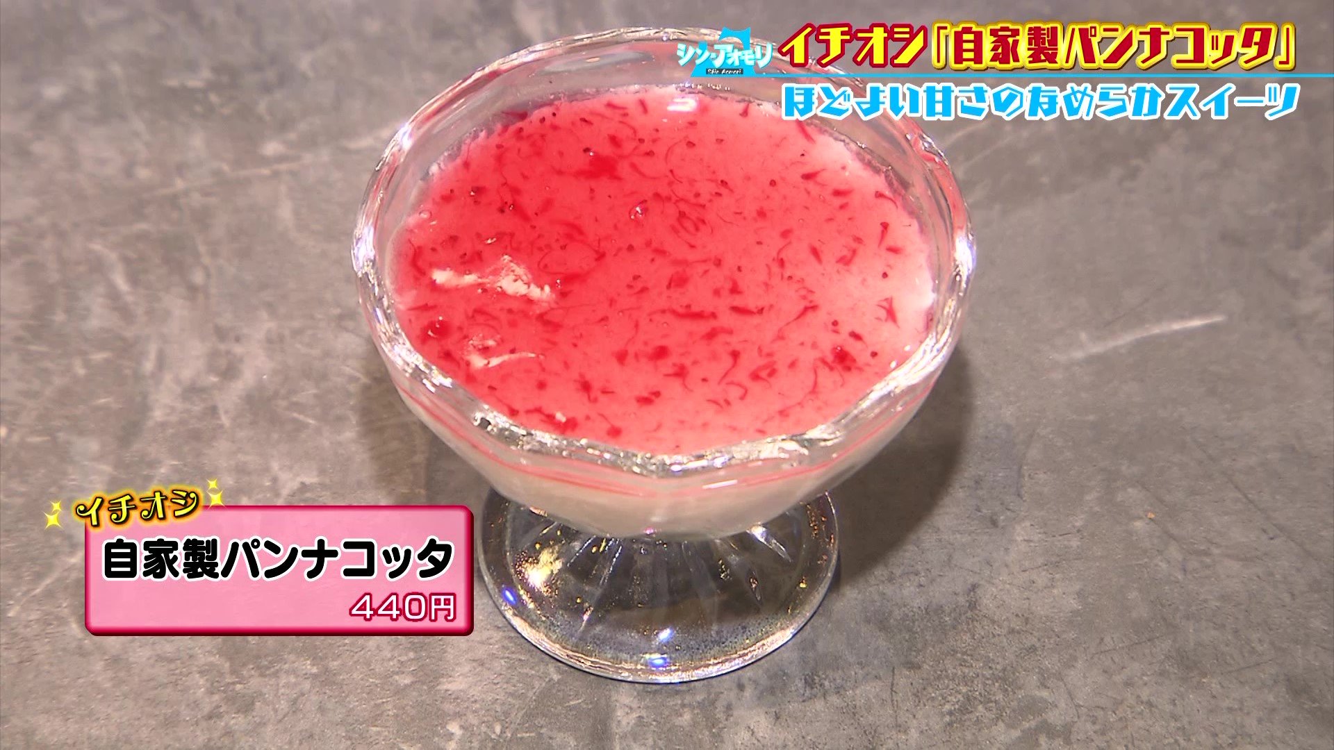 続いていただいたのは、【自家製パンナコッタ】(440円)です。甘さ控えめでとろける舌ざわりが自慢の締めにぴったりなデザートです。