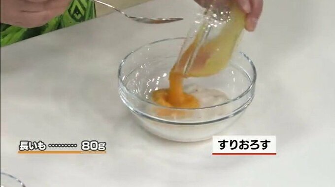 4.長いもをすりおろし、卵・塩こうじを加えてよく混ぜる。