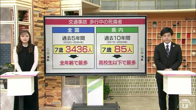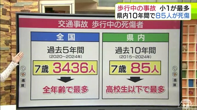 県警によりますと、県内で過去10年間に起きた歩行中の交通事故の死傷者は、やはり7歳が多く、85人が亡くなったり、けがをしたりしています。
