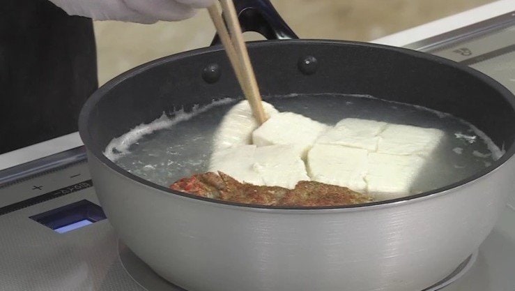 2.煮立ってトゲクリガニからだしが出たら豆腐を加える。