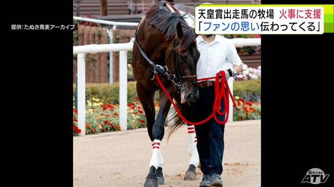 ATVの注目記事まとめ! 「天皇賞」出走のハヤテノフクノスケ レース当日に生産牧場で火事が… 牧場長「ただ見ているしか…」きゅう舎など全焼 エサも工具も焼けて苦境のなかで広がる“支援の輪”「ファンの思い伝わってくる」 2025年5月12日(月) 12:45 国内 中央競馬のG1・天皇賞に出走した「ハヤテノフクノスケ」。 この馬を生産した青森県階上町の牧場が、レース当日の夜に火事できゅう舎などが全焼しました。 この苦境に支援の輪が広がり、いま全国から支援物資が届いています。