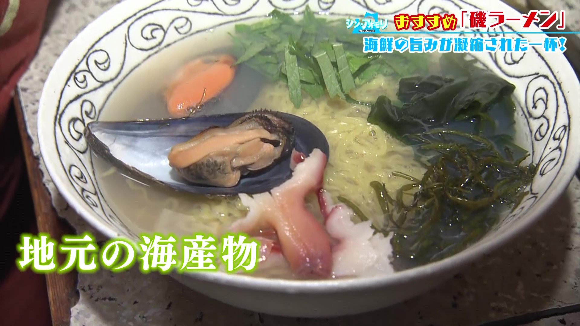 また、麺はあっさりスープがよく絡む細ちぢれ麺を使用。そして、仕上げにシュウリ貝(ムール貝)やワカメ、フノリなど地元の海産物をトッピングすれば完成!