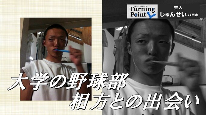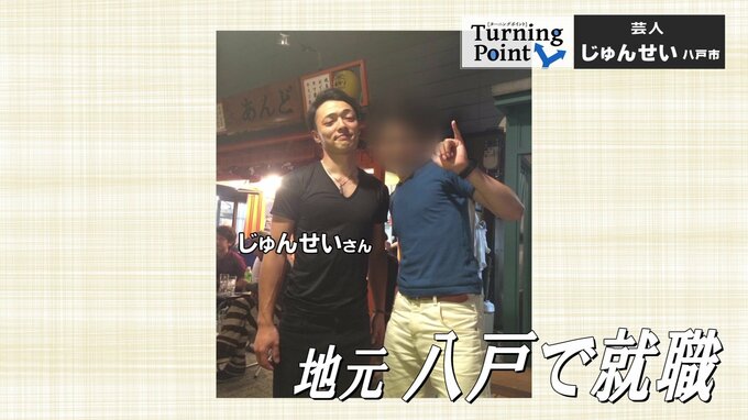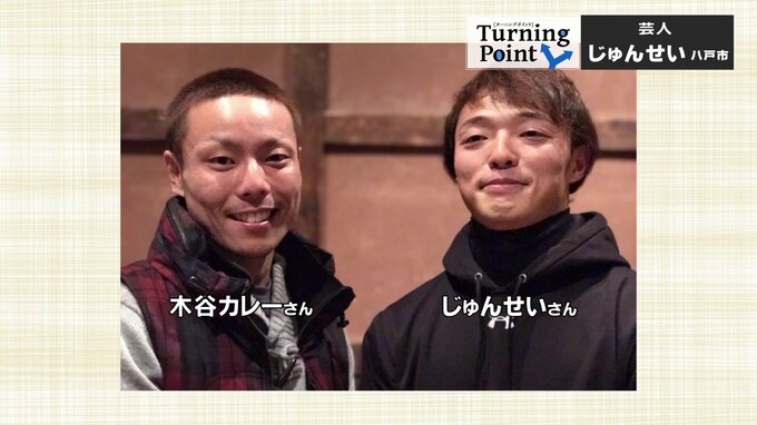 学生漫才でコンビを組んだものの、卒業後は、2人で芸人としてやっていきかった相方・木谷さんの誘いを断わり、じゅんせいさんは地元の八戸市で就職した。