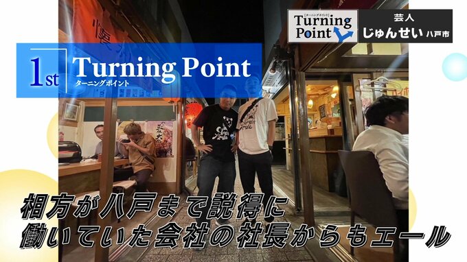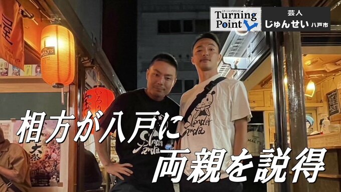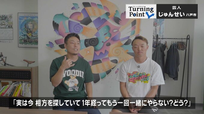 「やっぱり学生時代にコンビを組んでいたじゅんせいさんの感じがいいなと思って、1年経ってから東京から電話させていただいたんです。『実は今、相方を探していて、前も誘ったけど1年経ってもう1回一緒にやらない?どう?』と。じゅんせいさんは、『1年経ってやりたい気持ちはあるし、東京に行きたいなと思っているけど、八戸で働いてるし、親になかなか言えない』と」