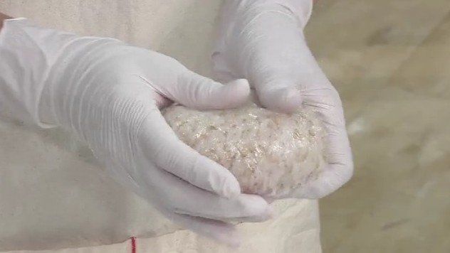 1.ご飯に刻んだ梅干しと白ごまを混ぜ、ラップを使って軽く握りお弁当箱に詰める。