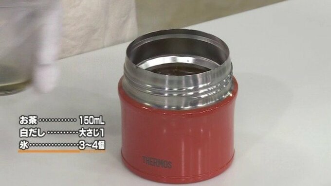 4.保温ジャーに、お茶・白だし・氷を入れて完成!