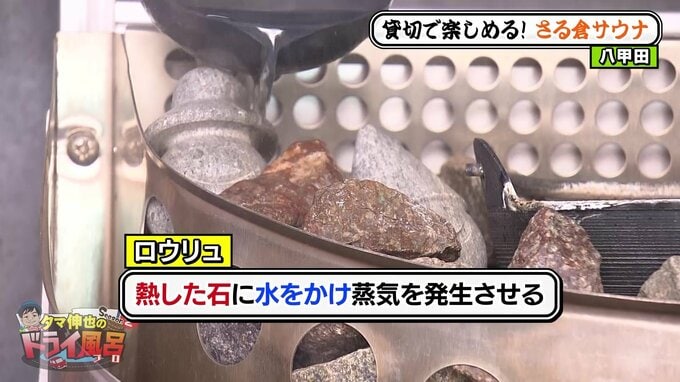 さらに熱さを求めて『ロウリュ』に挑戦すると、熱した石から蒸気が上がりました!