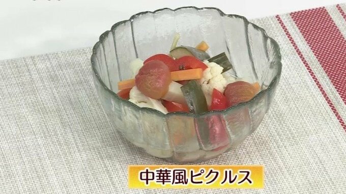 4.3のピクルス液にゆでた野菜・トマト・きゅうりを入れる。冷蔵庫に1日おき味がなじんだら完成!