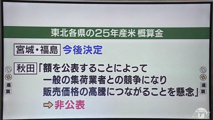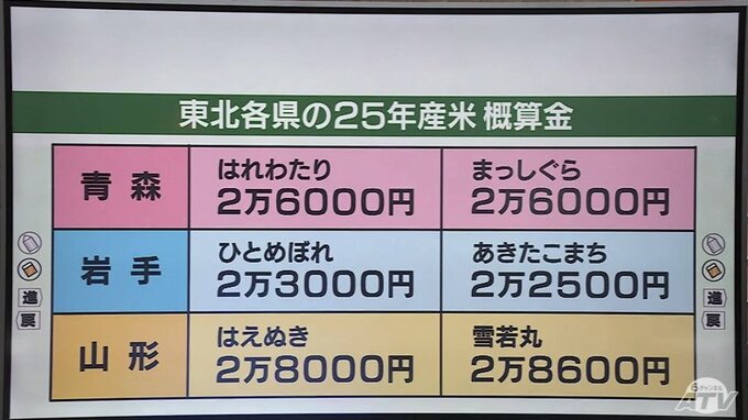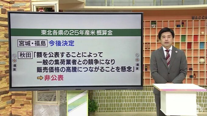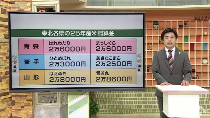 2025年にとれたコメの概算金を公表しているのは、「岩手」と「山形」で、「宮城」と「福島」は、今後決定します。
