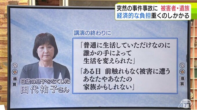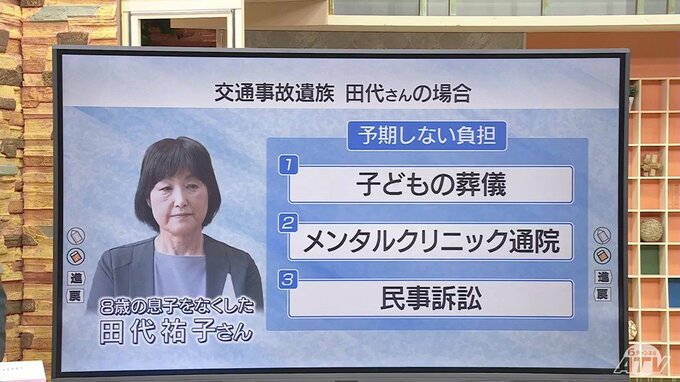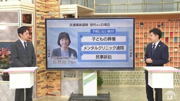 はい。田代さんの場合は息子を事故で亡くしたあと、何もする気がなくなってしまい、仕事を辞めるということにもなってしまいました。その一方で、全く予期していなかった『子どもの葬儀』そして『メンタルクリニックへの通院』、加害者に対する『民事訴訟費用』などが急にふりかかって経済的な負担が重くのしかかったといいます。
