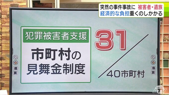 犯罪被害者支援条例ができた自治体は、被害者や遺族の経済的な負担の軽減を図ろうと、見舞金制度を設けている自治体もあります。多くの自治体では、見舞金について遺族には30万円、大けがをした人には10万円というような内容になっています。それだけが支援の全てというわけではありませんが、田代さんもそのような制度があれば負担は随分軽くなると話しています。