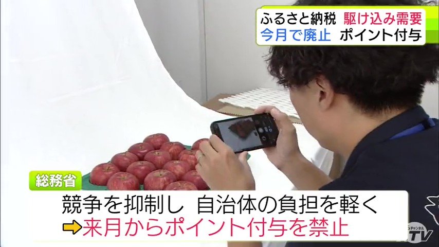 こうしたなか、総務省は過熱するポイント競争を抑制し、自治体の財政負担を軽くするために、10月からポイント付与の禁止を決定。いまは、全国で駆け込みの寄付が相次いでいます。
