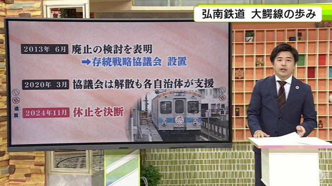 このため、2013年には弘南鉄道が廃止の検討を表明。これを受け、沿線自治体などが存続を模索する協議会を設置しました。