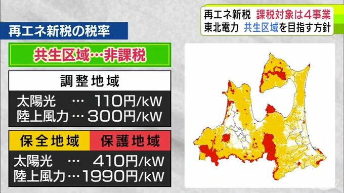 青森県の「再生可能エネルギー共生税条例」 東北電力が参画する風力発電では現時点で4事業が課税対象「地元の理解をいただきながら共生区域にもっていきたい」 2025年10月9日(木) 21:10 国内 再生可能エネルギーの事業者に対する青森県の税条例についてです。東北電力が参画する風力発電では、現時点では4つの事業が課税対象であることがわかりました。県の「再生可能エネルギー共生税条例」で対象となる…