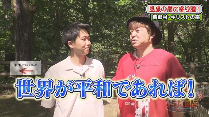 神妙な面持ちの2人。新井アナは世界平和を、タマさんは、8月に生まれた温泉ソムリエ・鎌田祥史さんのお子様の健やかな成長をお祈りしました。