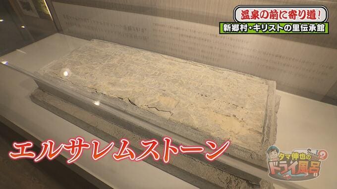 『キリストの里伝承館』には、キリストのことが記された『竹内文書』のレプリカや、キリストが実際にその上を歩いたとされる『エルサレムストーン』などが展示されています。