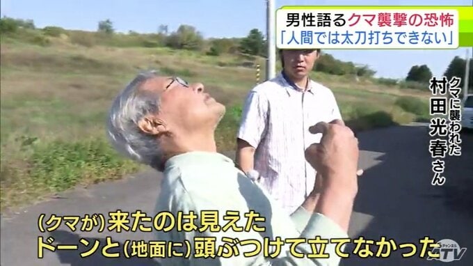 「わーっと、(クマが)来たのは見えた。ドーンと(地面に)頭をぶつけて立てなかった」