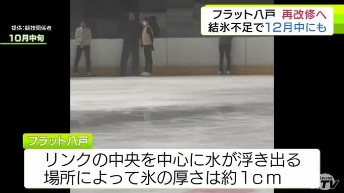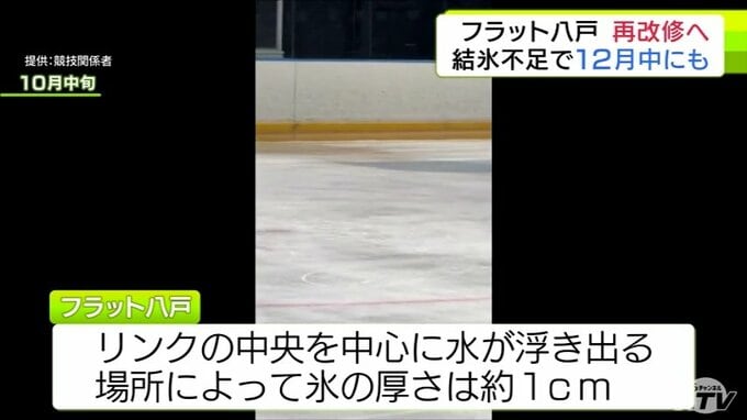 2026年1月末に青森県で開幕する、冬季国民スポーツ大会の競技会場の1つ「フラット八戸」についてです。リンクが結氷不足のため、水が浮き出る問題が起きていて、12月中にも改修工事を行うことが関係者への取材で分かりました。