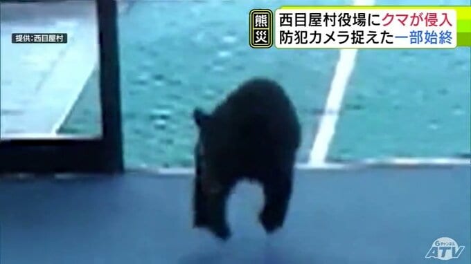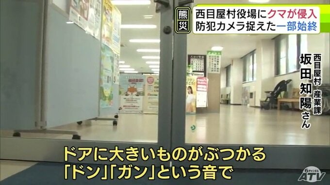 衝撃音を聞いた1階の事務室にいた職員が入り口のドアに向かうと、逃げ去っていくクマの姿を目撃したということです。