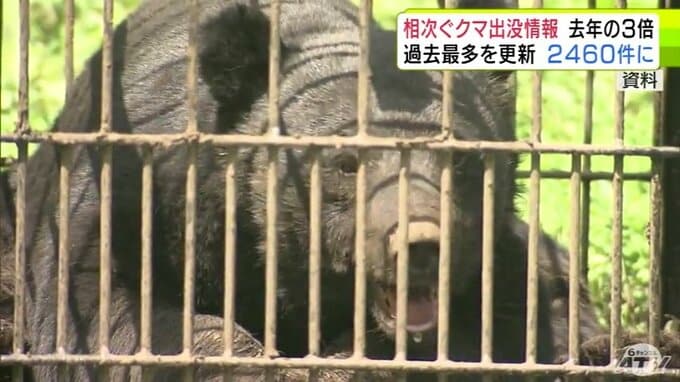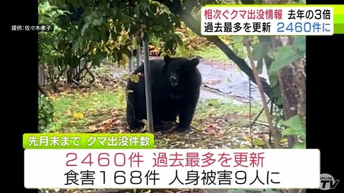 県のまとめによりますと、10月末までのクマの出没件数は、2024年の3倍を超える2460件で過去最多を更新。このうち食害は168件、人身被害は3日の被害も合わせて9人に上っています。