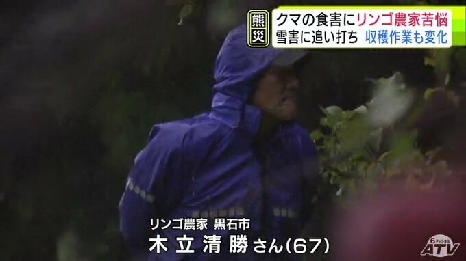 「ジョナゴールド」や「ふじ」など8種類のリンゴを育てている木立清勝さん(67)の園地にも、9月上旬にクマが出没しました。