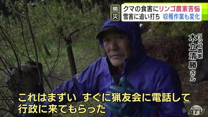 「(クマが)あそこにお尻を下げて木の上でリンゴを食べていた。これはまずいと思って、すぐに猟友会に電話して、行政に来てもらった」