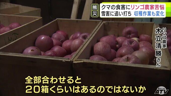 「全部合わせると20箱くらいはあるのではないか。クマの場合は遭ったときに人身被害があるので、それが一番怖い。本当にいいリンゴは4年~5年、7年ぐらいの枝が一番いいリンゴになると思うが、そこまで行くには年数がかかる。それが一番困る…」