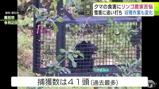 黒石市では今年度69件の出没があり、このうち食害は39件の上り、捕獲された数はすでに41頭と過去最多となっています。