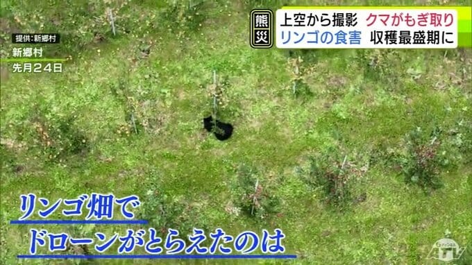 青森県新郷村で10月、クマがリンゴをもぎ取り、食べる様子がドローンで撮影されました。